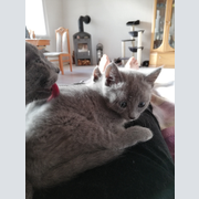 Eine gute Strategie, denn sie ist so frech und weiß schon ganz genau, das man ihr nicht böse sein kann, wenn sie schnurrt und ihren charmanten Blick aufsetzt. Wenn sie nicht gerade Quatsch macht sucht sie den Körperkontakt, entweder kuscheln oder auf der Schulter sitzen und alles genau beobachten. So sind sie, die Kleinen, spielen, fressen, kuscheln und Quatsch machen.